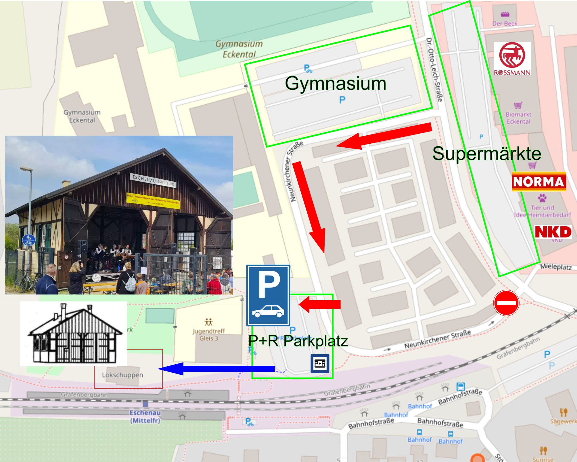 - 5.Vorbei an Norma – links abbiegen auf Höhe Biomarkt in die Neunkirchener Straße